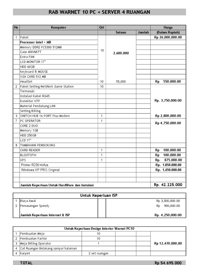 14 jasa instalasi listrik bagian dalam gedung cek sendiri 15 biaya renovasi cat bangun partisi dsb sekitar 5 10 jt. Install software dan billing warnet untuk pc server 3. Chimet is vip member.