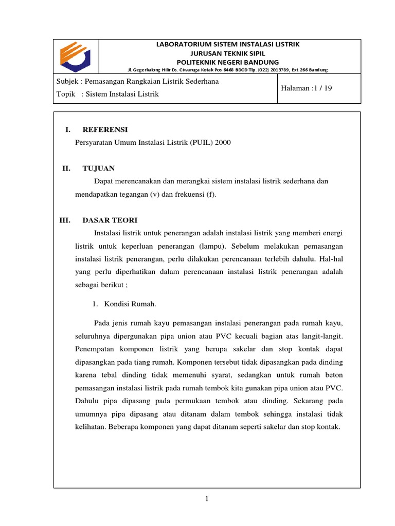 Doc Teknik Instalasi Pemanfaatan Tenaga Listrik Docx Ishri