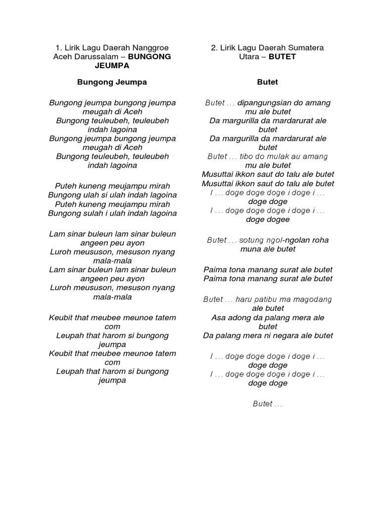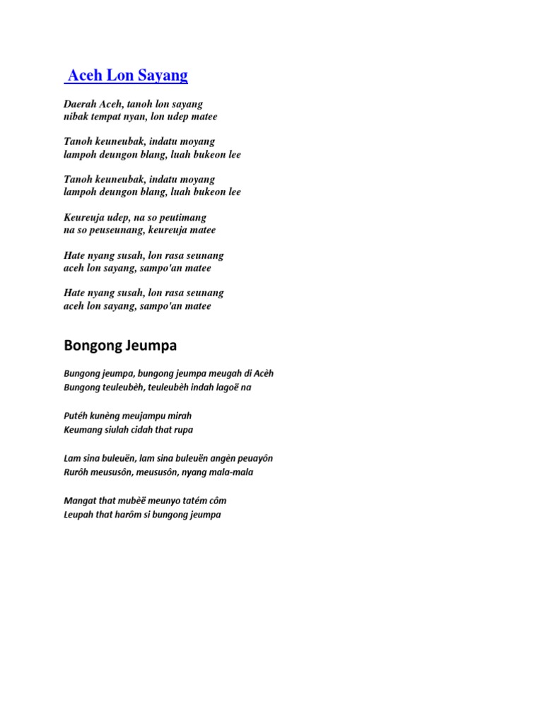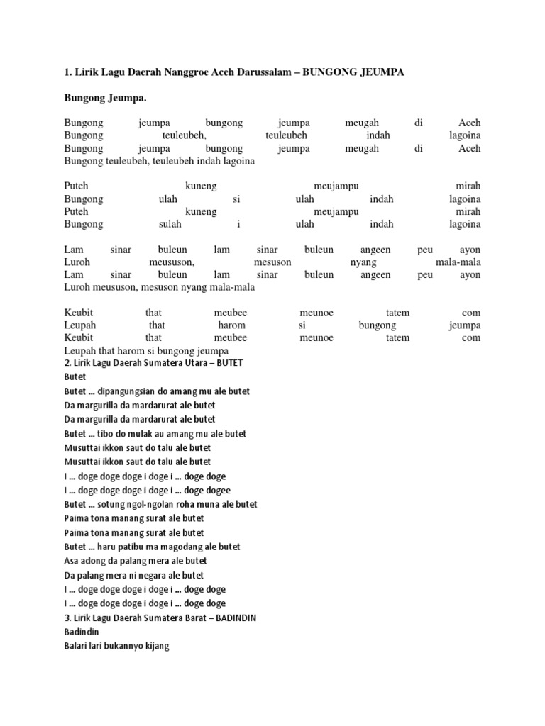 Lirik Lagu Aceh Bungong Jeumpa Docx