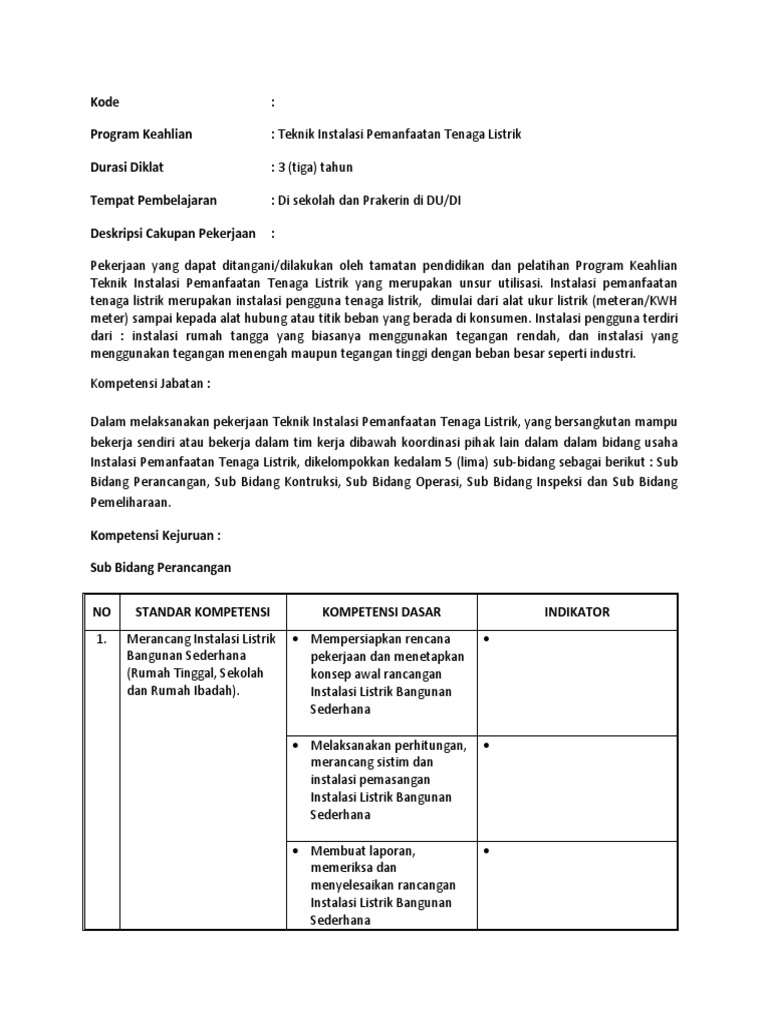 Lengkap Semua Mapel Rpp Teknik Instalasi Tenaga Listrik Kurikulum