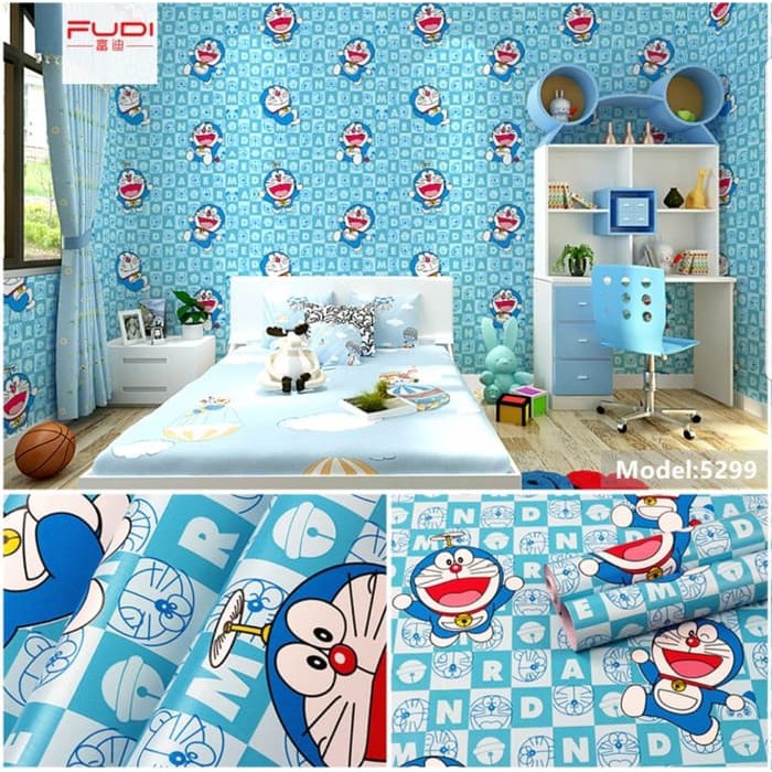 Jual Wallpaper Dinding Ruang Tamu Rumah Kamar Tidur Anak Doraemon Biru Jakarta Pusat Mahkota Acsesoris Tokopedia