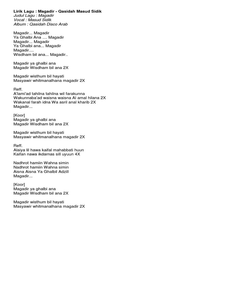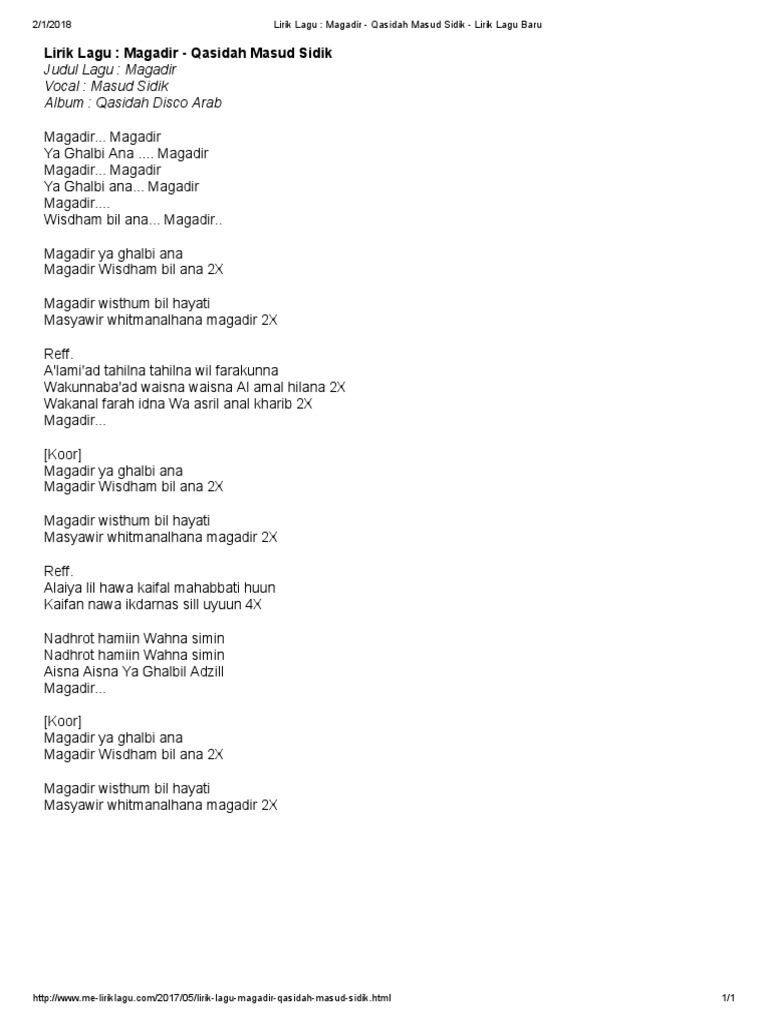 Doc Teks Lagu Magadir Versi Arab Dan Latin Fitra Yadi Academia Edu