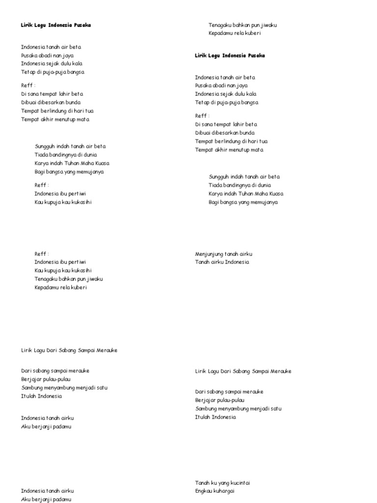 Lirik Lagu Wajib Nasional Indonesia 13 Indonesia Pusaka Wattpad
