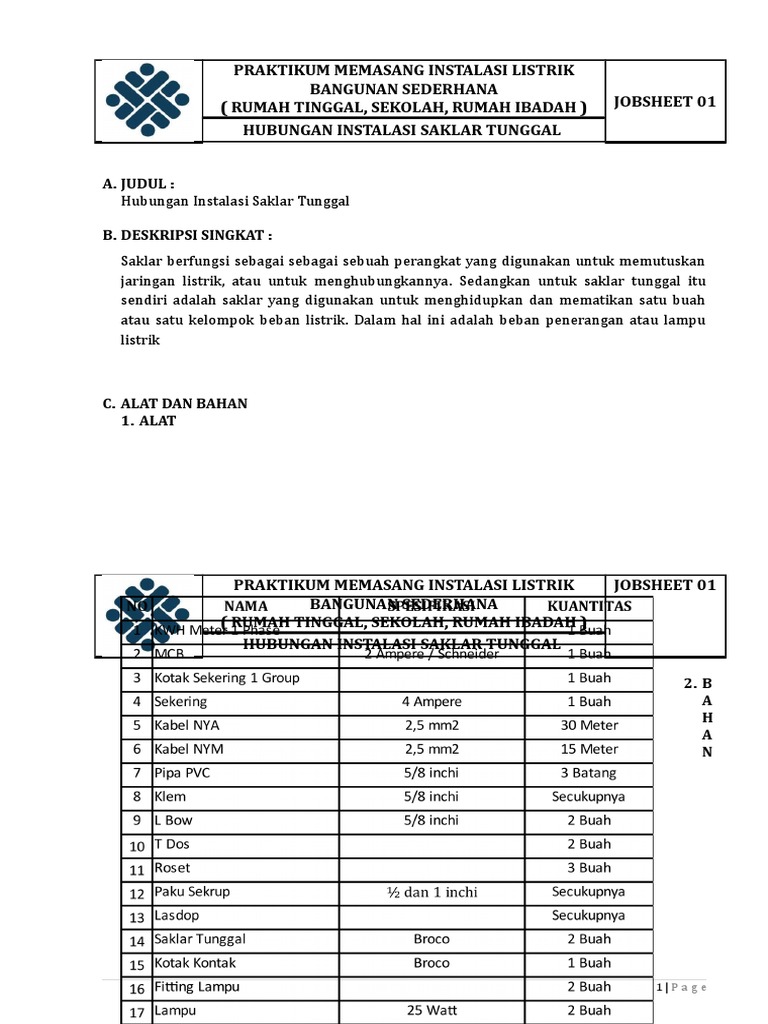 Jobsheet Praktik Instalasi Listrik Residensial