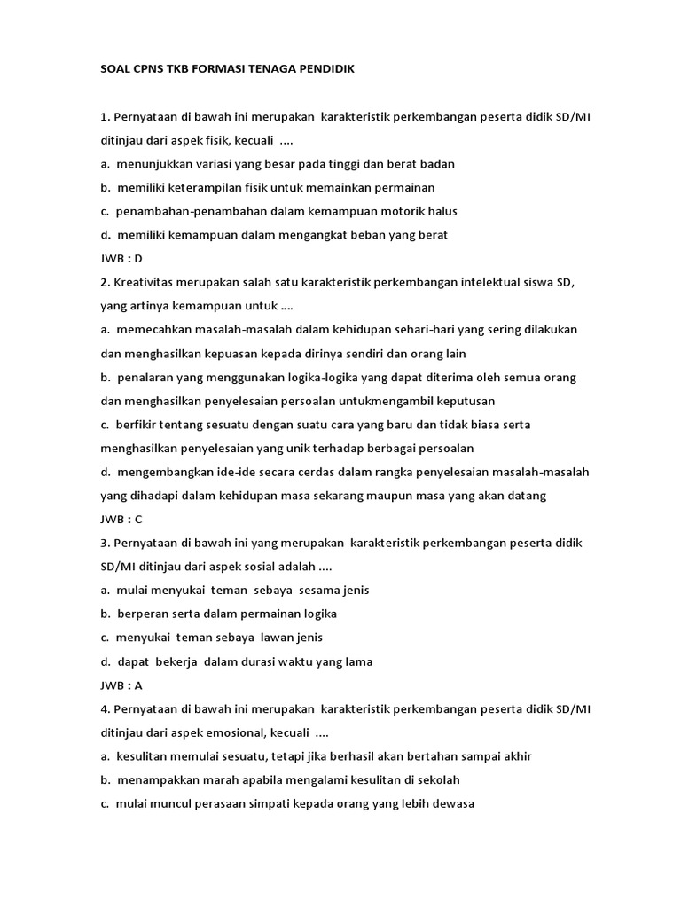 Soal Cpns Tkb Formasi Tenaga Pendidik