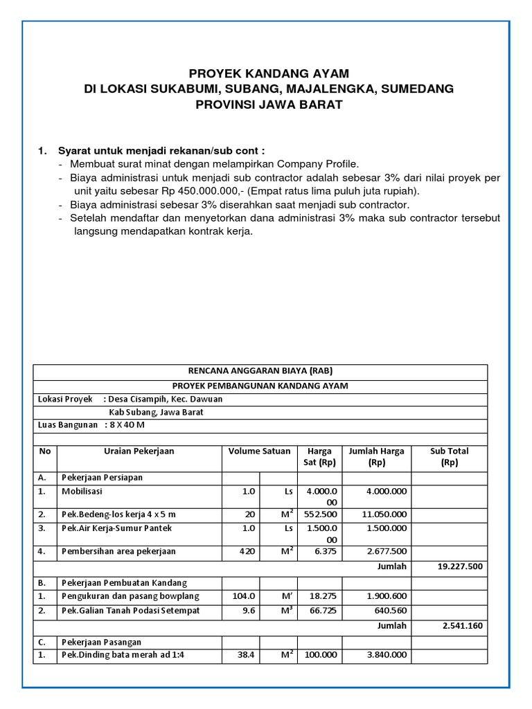Rencana Anggaran Biyaya Rab Pembangunan Kandang Closed House