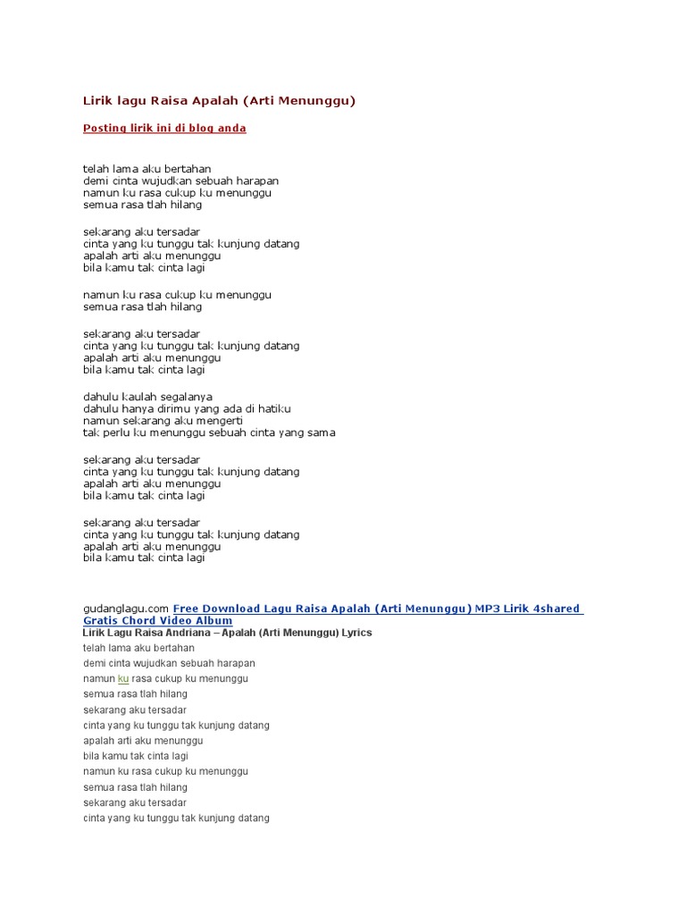 Lirik Lagu Indonesia Apalah Arti Menunggu Raisa Wattpad