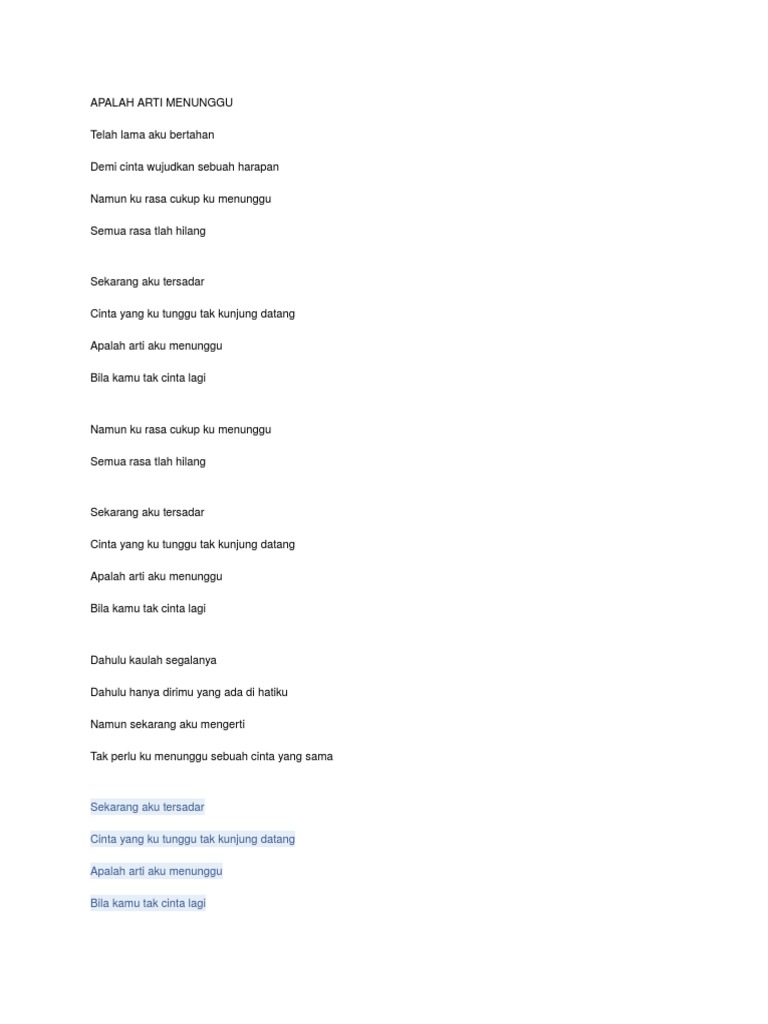 Apalah Arti Aku Menunggu Bila Kamu Tak Cinta Lagi Lirik Lagu