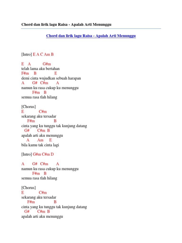 Chord Dan Lirik Lagu Raisa Apalah Arti Menunggu By Chord Zila Issuu