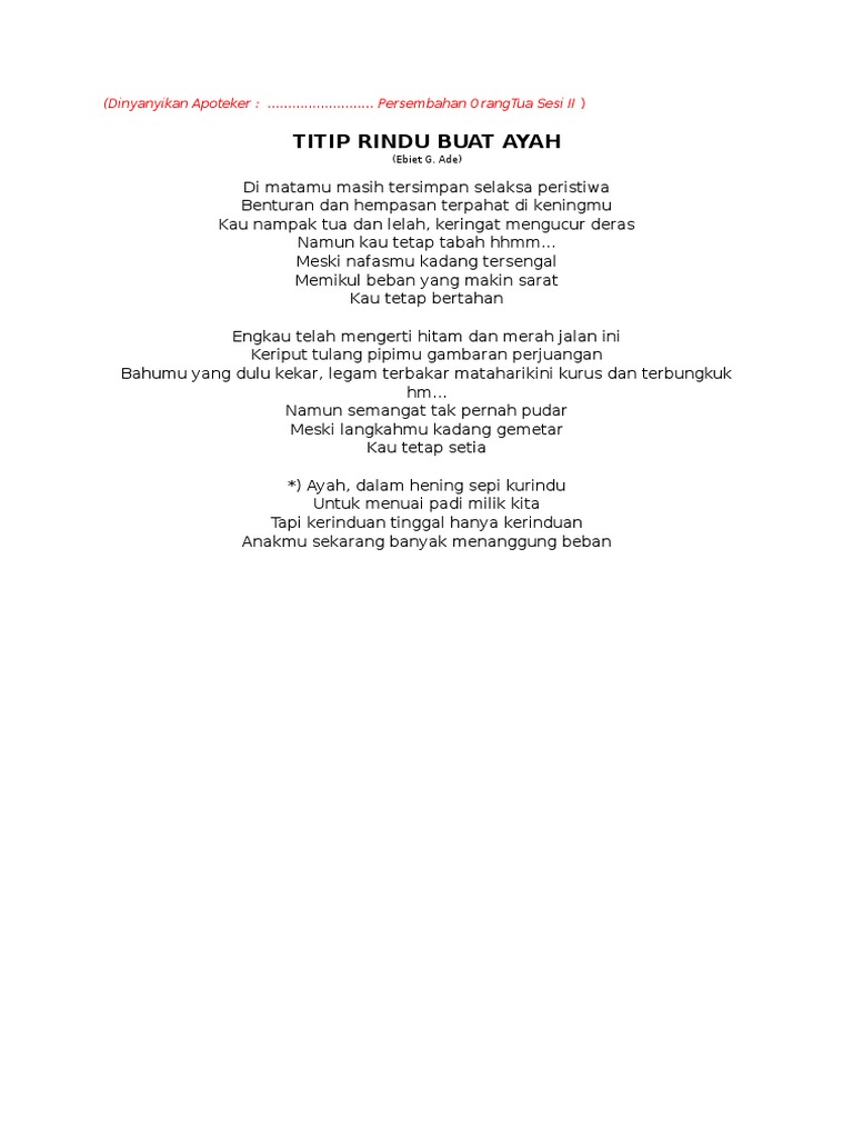 Titip Rindu Buat Ayah Lyrics And Music By Ebiet G Ade Arranged By