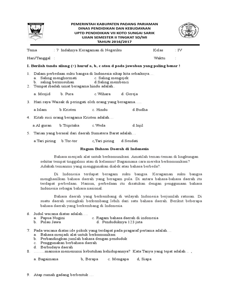 Soal Ulangan Soal Uas Ips Kelas 3 Sd Tahun Pelajaran 2016 2017 Silabus
