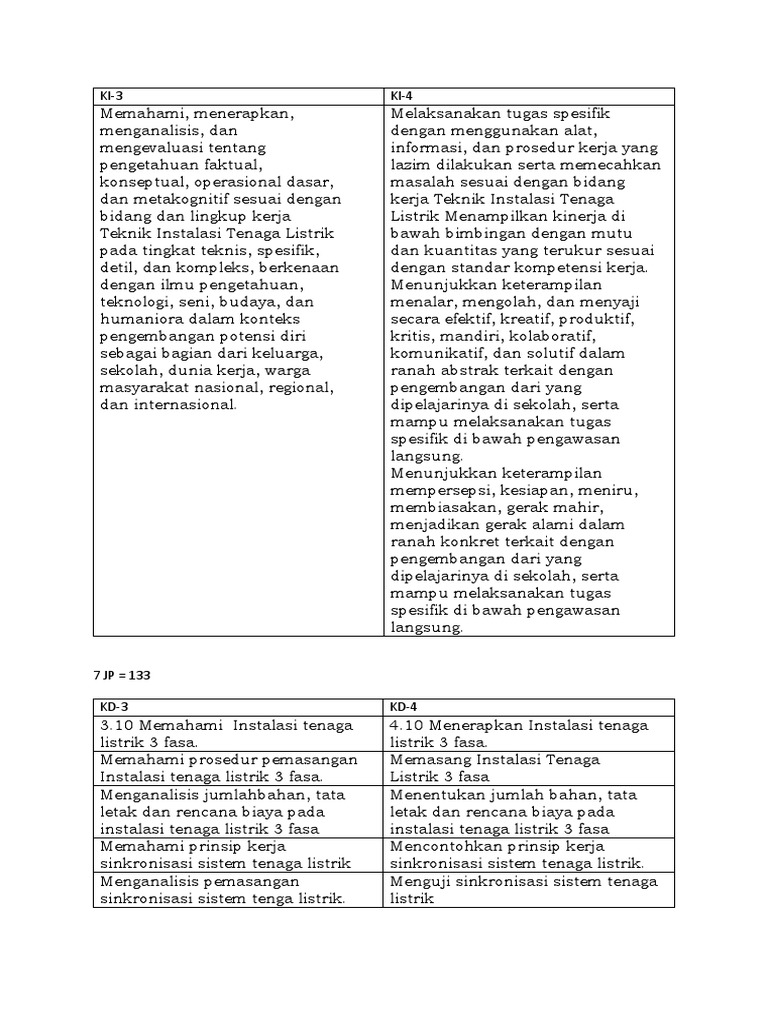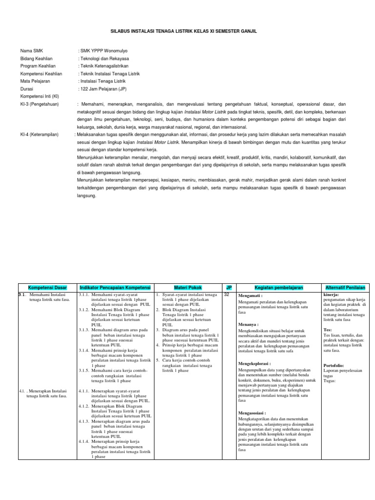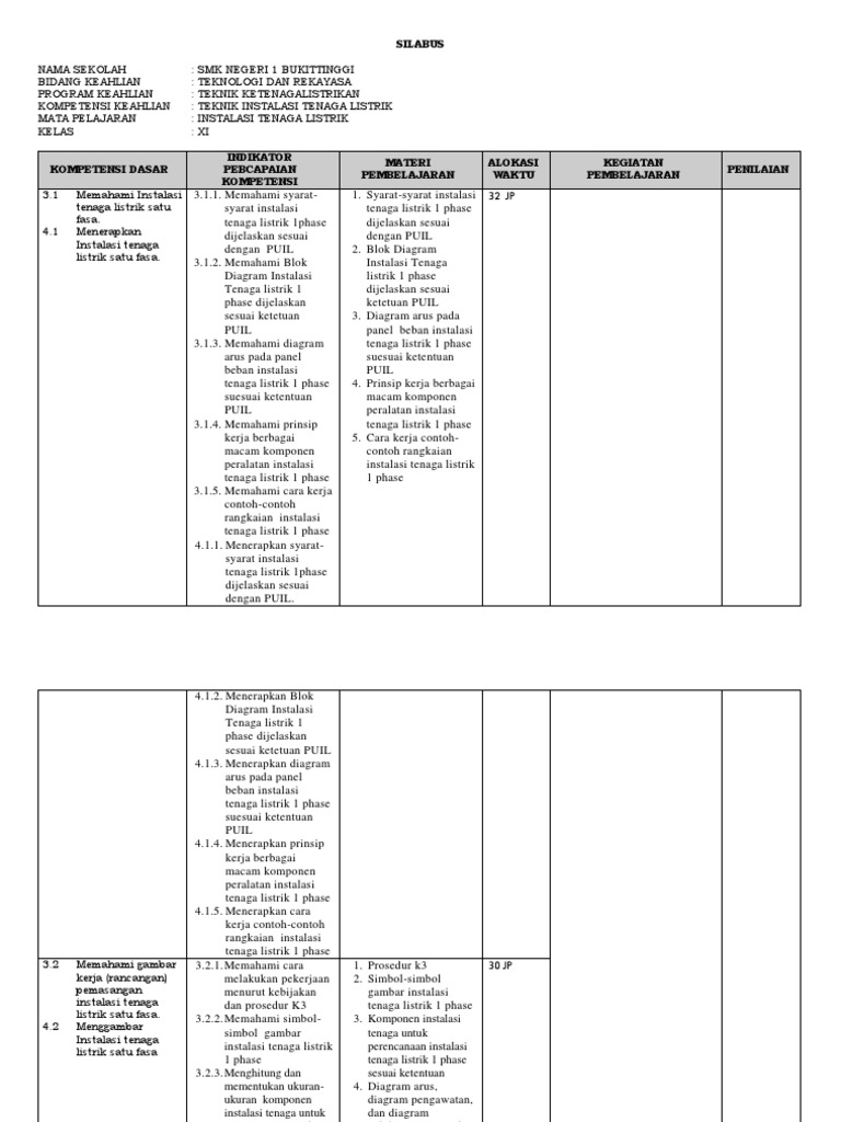 Silabus Mata Pelajaran Instalasi Tenaga Listrik Rev Kelas Xi