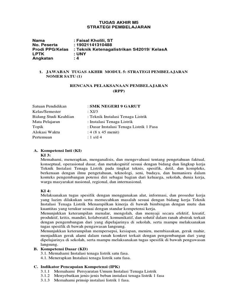 Rpp Memasang Instalasi Tenaga Listrik 3 Fasa
