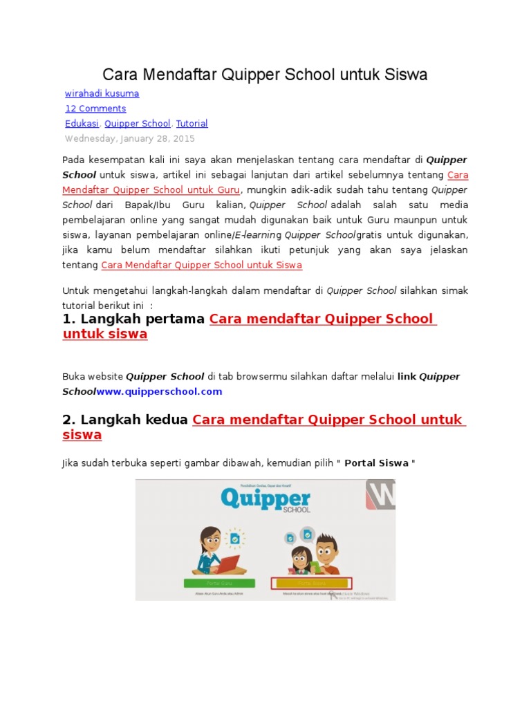 Cara Mendaftar Quipper School Untuk Siswa Docx