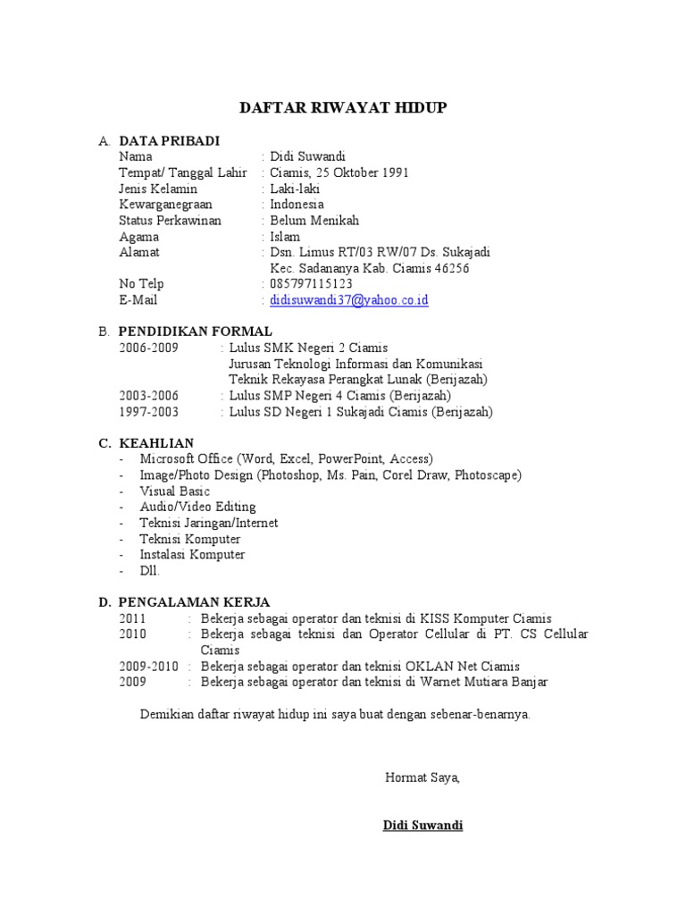 Contoh Daftar Riwayat Hidup Yang Benar Agar Diterima Kerja Did