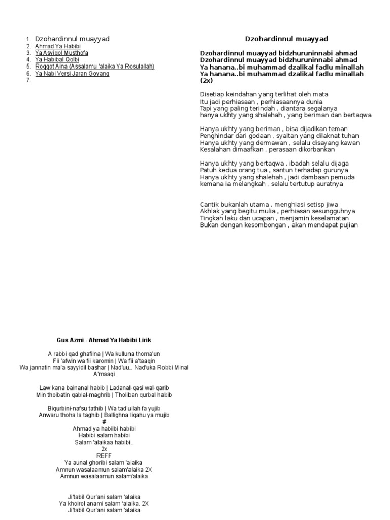 Lirik Lagu Dan Sholawat Ahmad Ya Habibi Wattpad