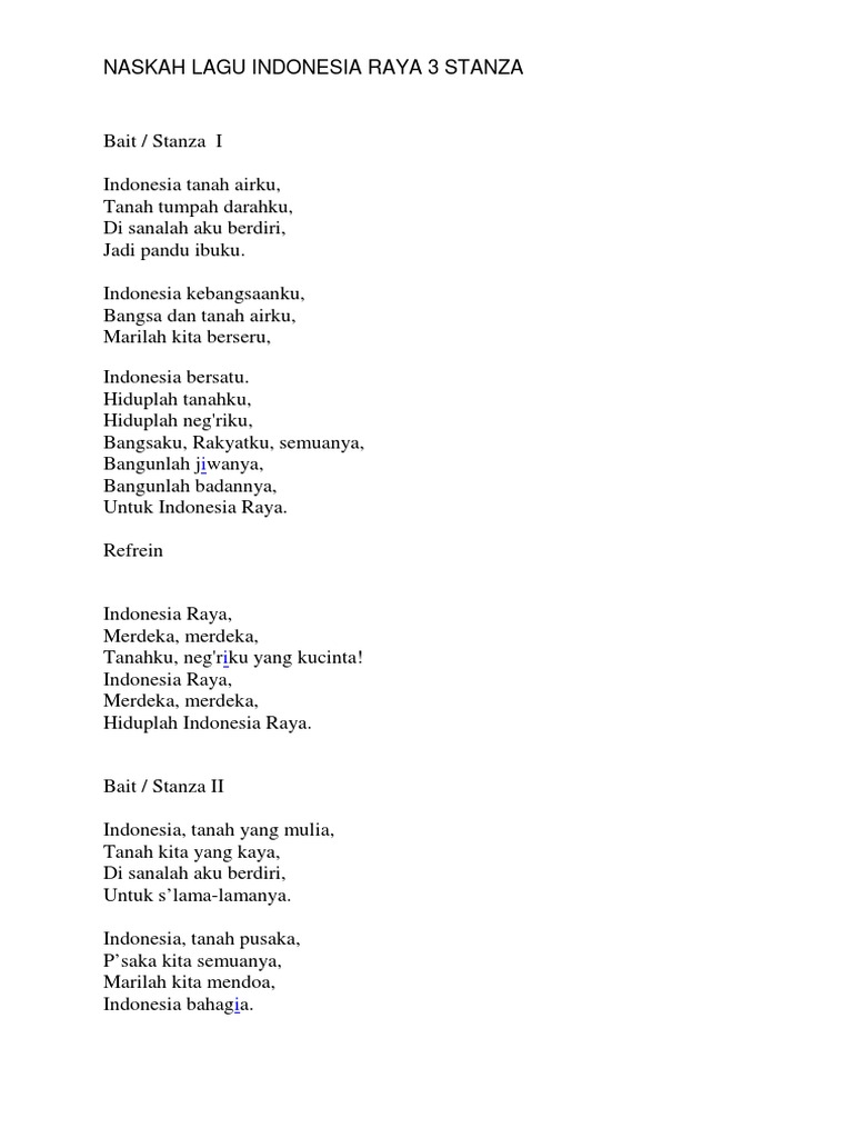 Lirik Indonesia Raya 3 Stanza Pdf Doc Okecoy Com Hari
