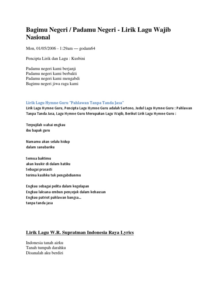 Padamu Negeri Bagimu Negeri Wajib Nasional Liik Lagu Dan Download Mp3