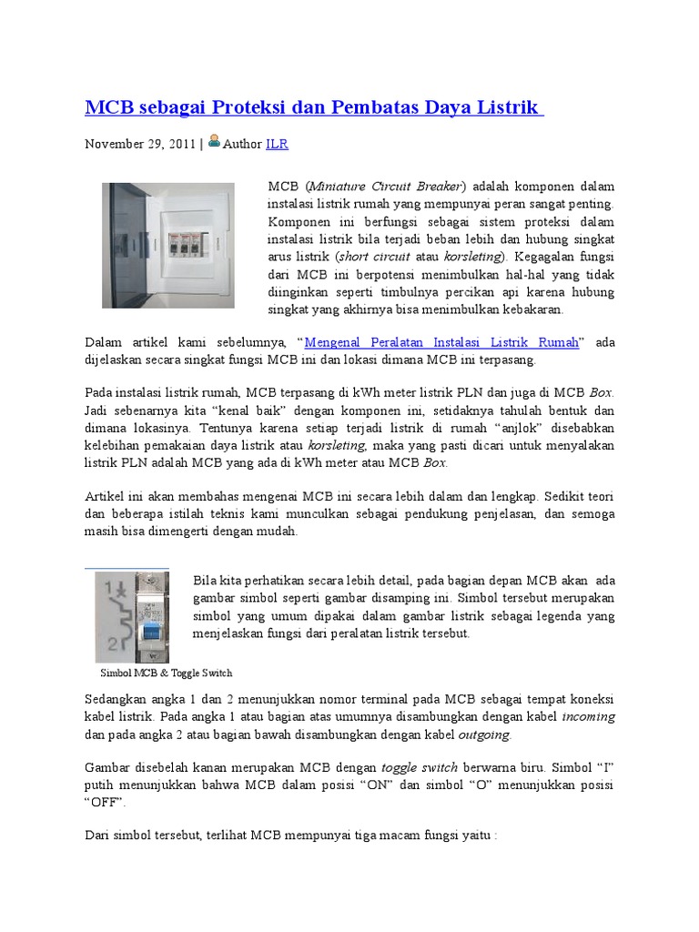 Mcb Sebagai Proteksi Dan Pembatas Daya Listrik