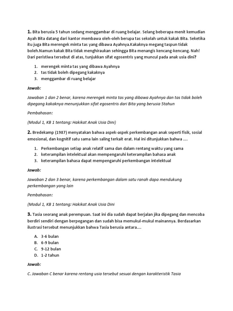 Soal Ujian Ut Pgpaud Paud4203 Evaluasi Perkembangan Anak Tk Disertai