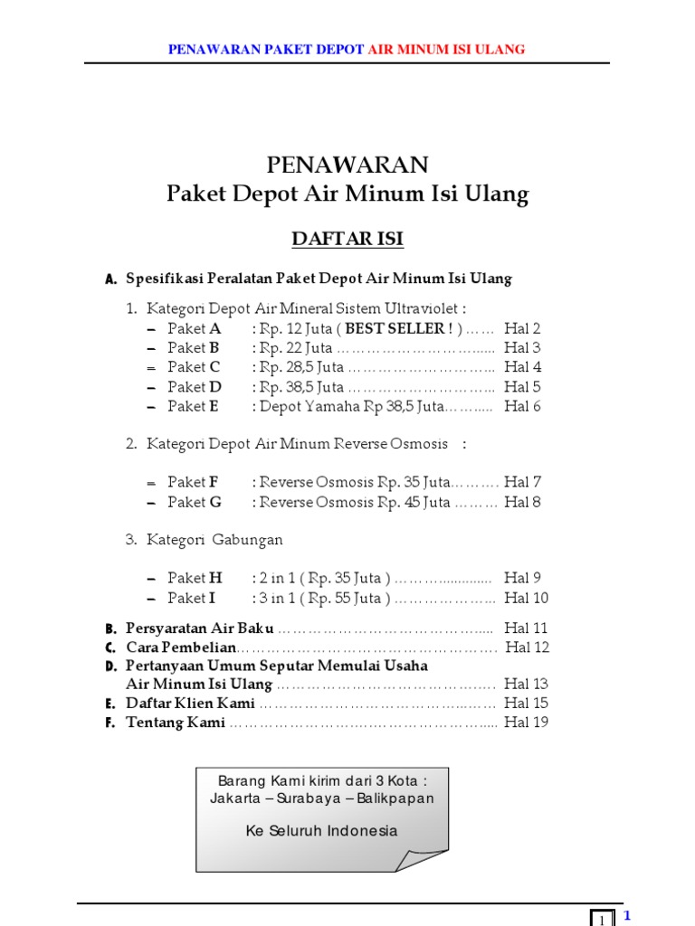 Penawaran Paket Depot Air Minum Isi Ulang Pdf