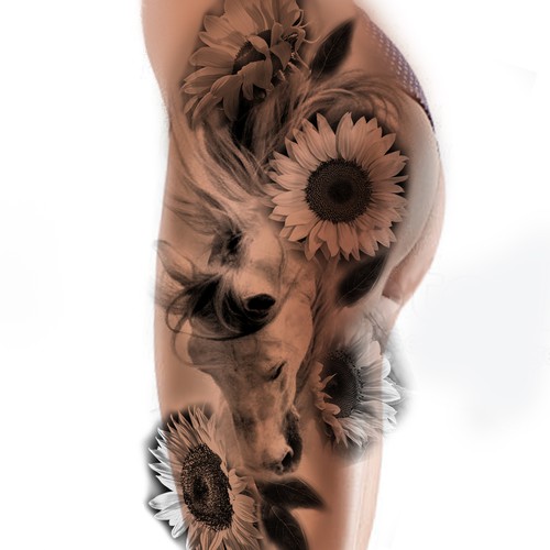 Horse And Sunflower Thigh Tattoo Tattoo Contest
