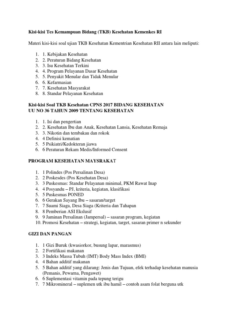 Kisi Kisi Soal Tkb Bidang Kesehatan Tes Cpns Sistem Qwerty