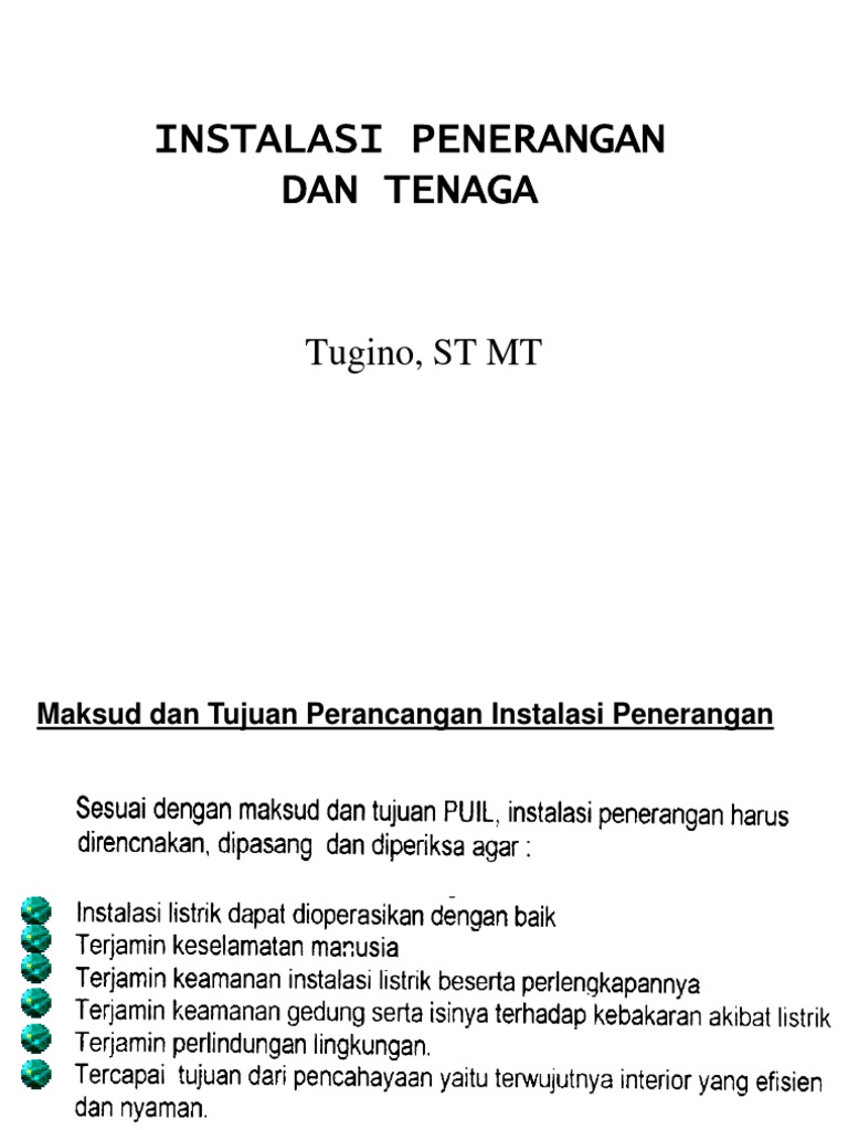 Utility 1 Instalasi Listrik Penerangan 2 Instalasi Listrik Tenaga