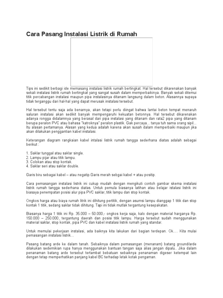 Cara Pasang Instalasi Listrik Di Rumah Docx