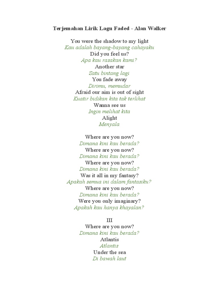 Lirik Lagu Faded Alan Walker Terjemahan Indo Nya Aj Brainly Co Id