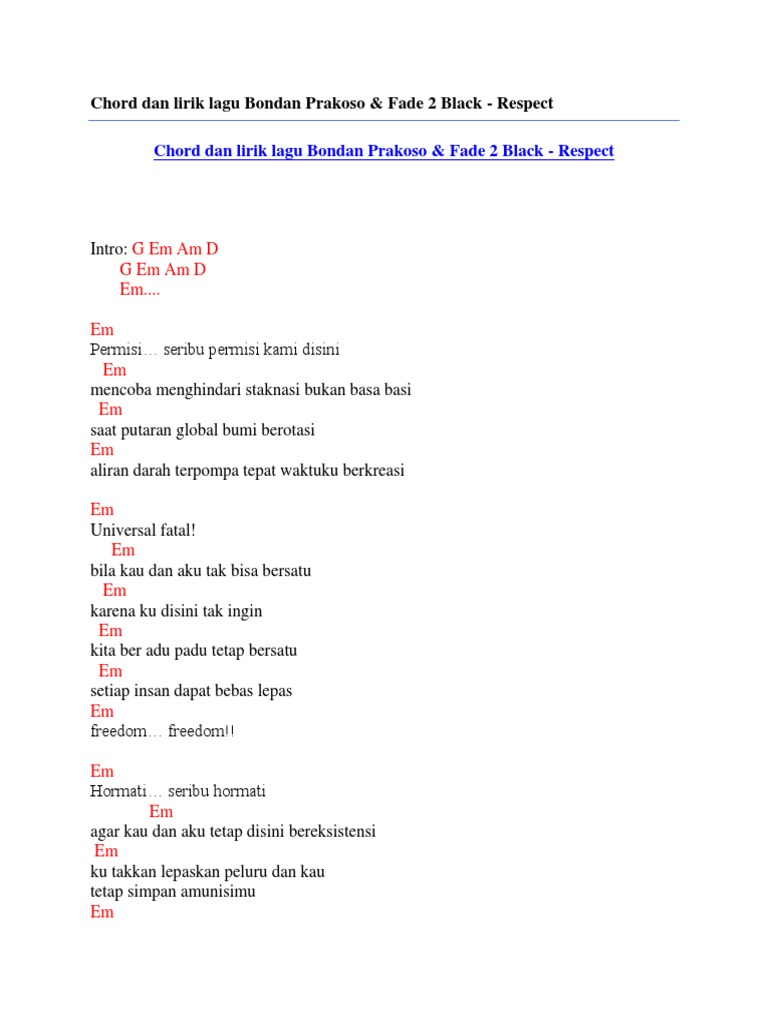 Chord Dan Lirik Lagu Bondan Prakoso Fade 2 Black Respect