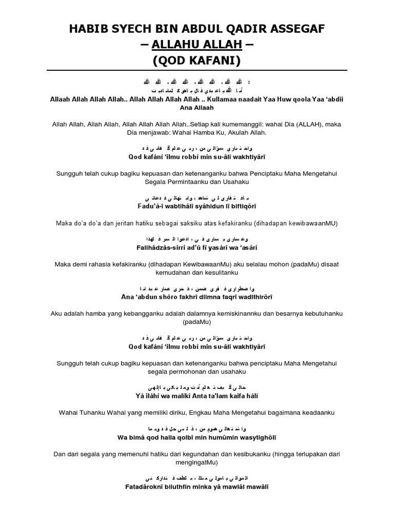 Abdullah Al Haddad Arti Lyric Sya Ir Qad Kafani Pdf Document