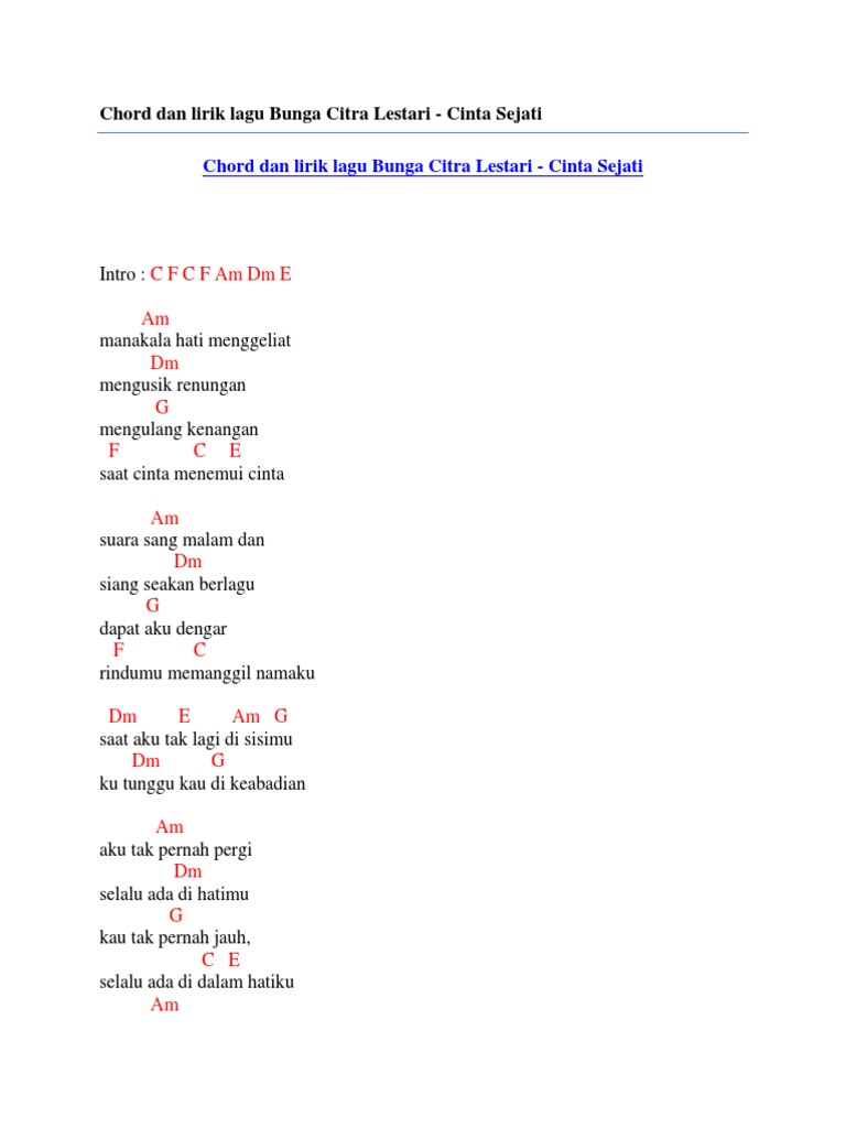 Chord Dan Lirik Lagu Bunga Citra Lestari Cinta Sejati