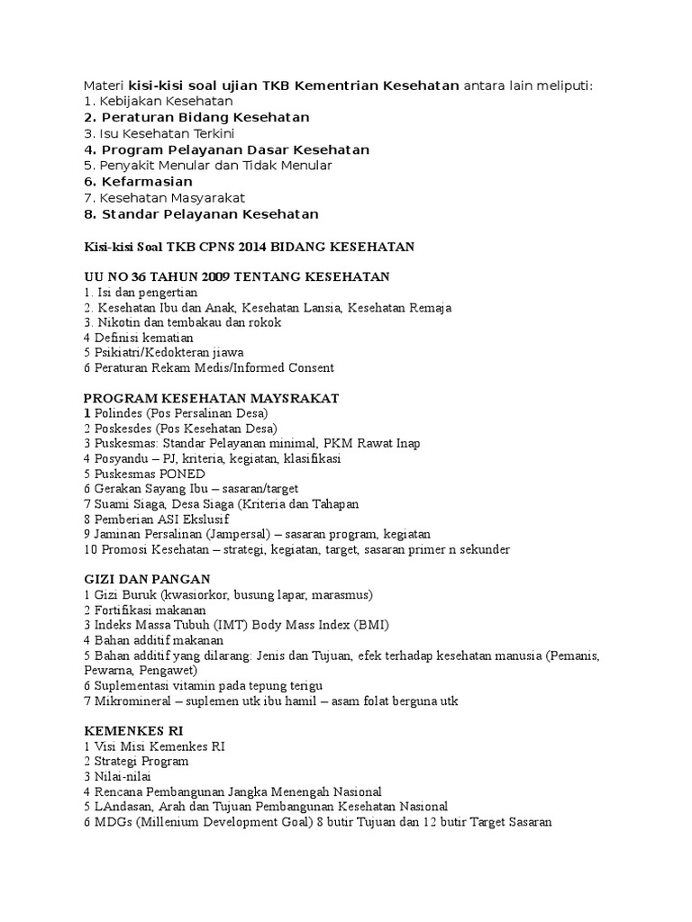 Kisi Kisi Soal Tkb Bidang Kesehatan Tes Cpns Sistem Qwerty