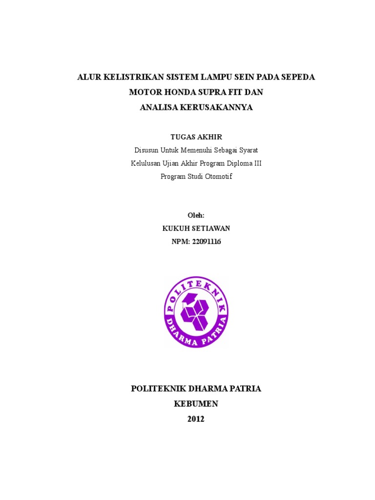 Alur Kelistrikan Sistem Lampu Sein Pada Sepeda Motor Honda Supra Fit